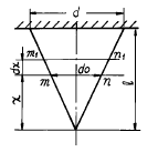 [재료역학] 그림과 같이 원추형 봉이 연직으로 매달려 있다. 길이 ℓ, 고정단의 직경 d, 비중량이 γ 인 경우 봉의 자중에 의한 신장량은?