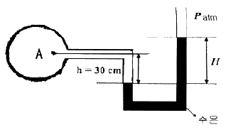 그림과 같은 원관 속을 30℃ , 절대압력 202 kPa 의 공기가 흐르고 있을 때 피토관(pitot tube) 속의 물의 높이차가 2cm이면, 관속을 흐르는 공기의 속도는 몇 m/s인가? (단,공기의 기체상수는 R=287 J/kg ∙K이다.)
