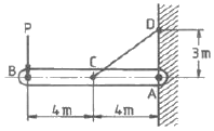 [재료역학] 그림과 같이 수평 강체봉 AB의 한쪽을 벽에 힌지로 연결하고 죄임봉 CD로 매단 구조물이 있다. 죄임봉의 단면적은 1cm2, 허용 인장응력은 100MPa일 때 B단의 최대 안정하중은 P는 몇 kN인가?