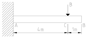 끝단 B점에서의 허용 처짐량을 고려할 때, 목재의 처짐은 다음과 같이 계산된다.
