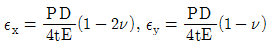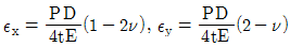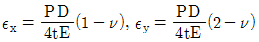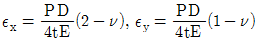 원통형 압력용기에 내압 P가 작용하면, 원통부의 축 방향과 원주 방향에 각각 압축력이 작용하게 된다. 이 때, 강판의 두께 t가 원통의 지름 D에 비하여 충분히 작기 때문에, 원통부의 축 방향 변형률 Єx은 다음과 같이 구할 수 있다.