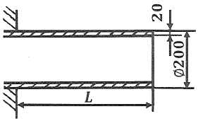[재료역학] 그림과 같이 두께가 20mm, 외경이 200mm인 원관을 고정벽으로부터 수평으로 4m만큼 돌출시켜 물을 방출한다. 원관 내에 물이 가득차서 방출될 때 자유단의 처짐은 약 몇 mm인가? (단, 원관 재료의 세로탄성계수는 200GPa, 비중은 7.8이고 물의 밀도는 1000kg/m3이다.)