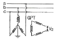 [전력공학] 6.6kV 3상3선식 배전선로에서 완전 1선 지락고장이 발생 하였을 때 GPT 2차에 나타나는 전압[V]은? (단, GPT는 변압기 3대로 구성되어 있으며, 변압기의 변압비는