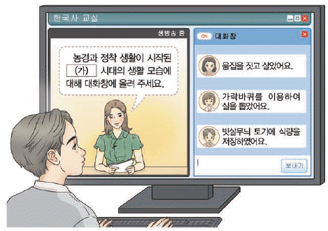 "입니다. 이유는 그림에서 보이는 유물이 바로 석기시대의 돌도끼이기 때문입니다. 다른 보기들은 청동기시대 이후에 나타난 유물들입니다.