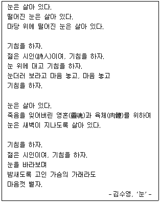 - ② '눈'과 '기침하는 행위'의 상징성이 뚜렷이 부각되고 있어.