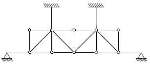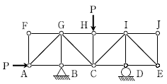 다음과 같이 수직, 수평의 집중하중을 받고 있는 트러스에서 부재력이 0인 부재의 개수는? (단, 자중은 무시한다)