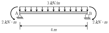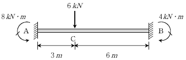 다음과 같이 집중하중이 작용하는 양단 고정보에서 지점의 반력 모멘트가 그림과 같이 A점에 8kNㆍm(