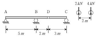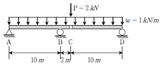 )일 때, C점의 휨모멘트[kNㆍm]는? (단, 자중은 무시한다)