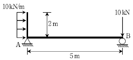 그림과 같은 구조물에서 A지점의 수직반력[kN]은? (단, 자중은 무시한다)