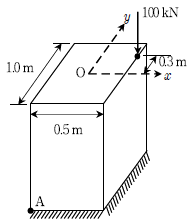 그림과 같은 단주에서 지점 A에 발생하는 응력[kN/m2]의 크기는? (단, O점은 단면의 도심이고, 자중은 무시한다)