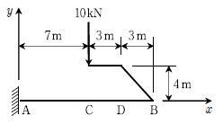 그림과 같은 xy 평면상의 구조물에서 지점 A의 반력모멘트 [kN⋅m]의 크기는? (단, 구조물의 자중은 무시한다)