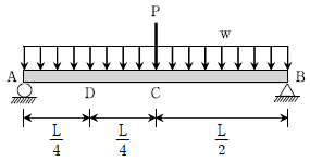 그림과 같은 단순보에서 D점의 전단력은? (단, 보의 자중은 무시한다)