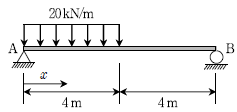 그림과 같은 단순보에서 최대 휨모멘트가 발생하는 단면까지의 A로부터의 거리 x[m]와 최대 휨모멘트 Mmax[kN⋅m]는? (단, 보의 자중은 무시한다) (순서대로 x, Mmax)