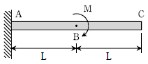 그림과 같이 B점에 모멘트 M을 받는 캔틸레버보에서 C점의 수직처짐은 B점의 수직처짐의 몇 배인가? (단, 보의 휨강성 EI는 일정하고, 자중은 무시한다)