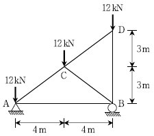 그림과 같은 트러스에서 CB부재에 발생하는 부재력의 크기[kN]는? (단, 모든 부재의 자중은 무시한다)