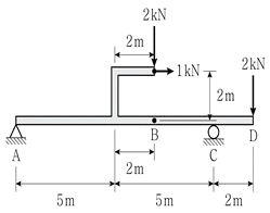 그림과 같이 부재에 하중이 작용할 때, B점에서의 휨모멘트 크기[kNㆍm]는? (단, 구조물의 자중 및 부재의 두께는 무시한다)