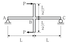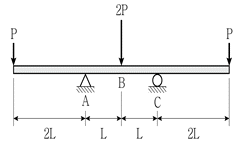 그림과 같은 내민보에 집중하중이 작용하고 있다. 한 변의 길이가 b인 정사각형 단면을 갖는다면 B점에 발생하는 최대 휨응력의 크기는