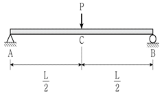 그림과 같은 직사각형 단면(폭 b, 높이 h)을 갖는 단순보가 있다. 이 보의 최대휨응력이 최대전단응력의 2배라면 보의 길이(L)와 단면 높이(h)의 비(L/h)는? (단, 보의 자중은 무시한다)