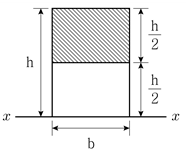 그림과 같이 폭이 b이고 높이가 h인 직사각형 단면의 x축에 대한 단면2차모멘트 Ix1과 빗금친 직사각형 단면의 x축에 대한 단면2차모멘트 Ix2의 크기의 비