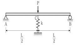 그림과 같은 단순보의 C점에 스프링을 설치하였더니 스프링에서의 수직 반력이 P/2가 되었다. 스프링 강성 k는? (단, 보의 휨강성 EI는 일정하고 보의 자중은 무시한다)