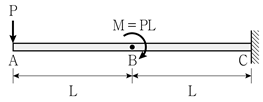 그림과 같은 캔틸레버보에 집중하중 P와 모멘트하중 M=PL이 작용할 때, 옳지 않은 것은? (단, 구조물의 자중은 무시한다)