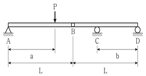 그림과 같은 게르버보에서 C점의 상향 수직반력이 P의 2배가 되기 위한 a/b는? (단, 0<a<L, 0<b<L이며, 구조물의 자중은 무시한다)