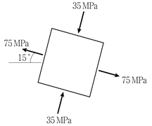 그림과 같은 평면응력상태에 있는 미소응력요소에서 최대전단응력의 크기[MPa]는?