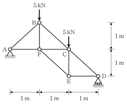 그림과 같은 트러스에서 부재 BC의 부재력[kN]은? (단, 구조물의 자중은 무시한다)