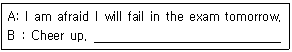 [과목 구분 없음] 다음 대화의 흐름으로 보아 밑줄 친 부분에 들어갈 가장 적절한 표현을 고르시오.