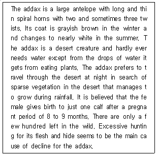 [과목 구분 없음] 다음 글의 addax에 대한 설명과 일치하지 않는 것은?