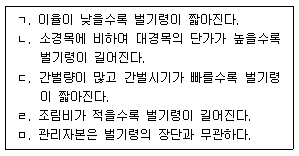 [과목 구분 없음] 토지순수익 최대의 벌기령에 영향을 주는 요소들에 대한 설명으로 옳은 것으로만 묶은 것은?