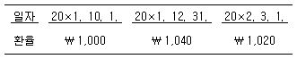 [과목 구분 없음] (주)한국의 기능통화는 원화이며, 달러화 대비 원화의 환율은 다음과 같다.