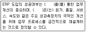[경영혁신과 ERP] 다음 [보기]의 ( ) 안에 공통적으로 들어갈 가장 알맞은 용어는 다음 중 무엇인가?