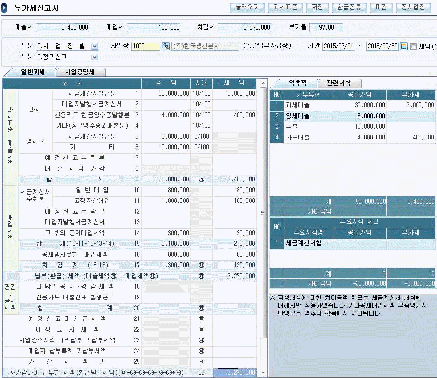 [세무회계의 이해] 다음 화면의 부가세신고서를 설명한 것으로 가장 옳지 않은 것은 무엇인가?