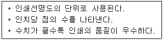 위의 그림은 DPI (Dots Per Inch)에 대한 설명이다. DPI는 인쇄물이나 화면에 출력되는 이미지의 해상도를 나타내는 단위로, 1인치당 출력되는 점의 수를 의미한다. 따라서 DPI가 높을수록 이미지의 해상도가 높아지며, 선명하고 부드러운 이미지를 출력할 수 있다.