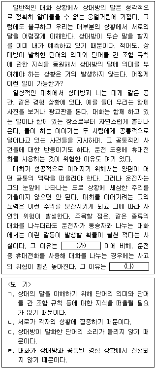 [과목 구분 없음] 다음 글의 문맥상 (가)와 (나)에 들어가기에 가장 적절한 것을 <보기>에서 골라 알맞게 짝지은 것은?(순서대로 (가), (나))