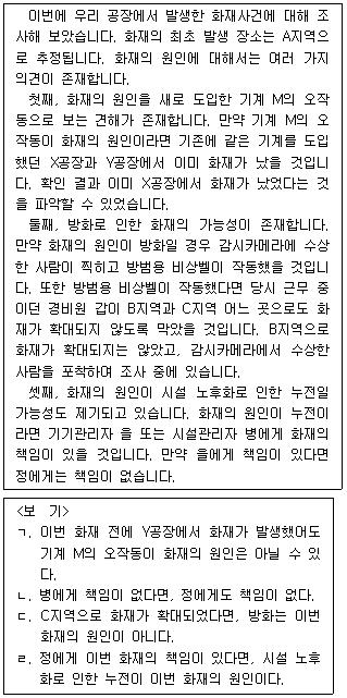 다음 글의 내용이 참일 때, 반드시 참인 것만을 <보기>에서 모두 고르면?
