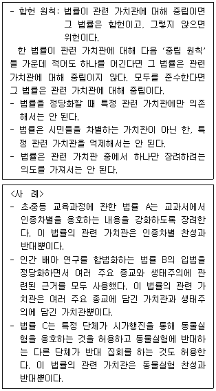 [과목 구분 없음] 다음 원칙들에 따를 때, 합헌인 것만을 <사례>에서 모두 고르면?
