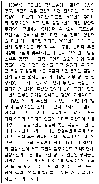 - ① 1930년대 우리나라에서 '탐정'이라는 말은 현재보다 더 넓은 의미를 가졌다.