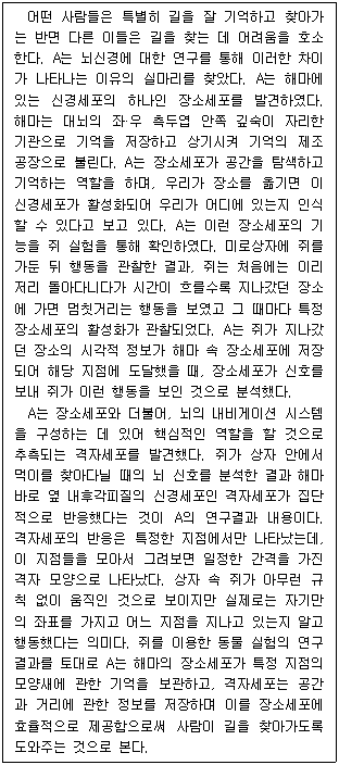 - ② 사람의 장소세포는 쥐와 달리 해마뿐만 아니라 소뇌에서도 발견된다는 연구 사례가 보고되었다.