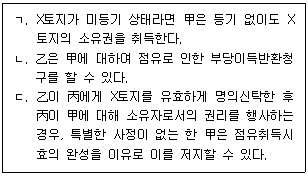 - 따라서, 甲이 20년간 소유의 의사로 평온, 공연하게 乙소유의 X토지를 점유한 경우에는 甲이 X토지의 소유자가 될 수 있습니다.
