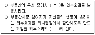 [부동산학원론] 외부효과에 관한 내용으로 ( )에 들어갈 것으로 옳은 것은?