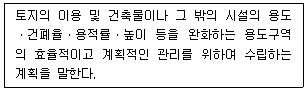 [부동산학원론] 국토의 계획 및 이용에 관한 법률상 다음에 해당하는 계획은?