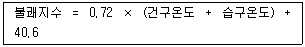 일반적으로 인체에 가해지는 온·습도 및 기류 등의 외적변수를 종합적으로 평가하는 데에는 “불쾌지수”라는 지표가 이용된다. 불쾌지수의 계산식이 다음과 같은 경우, 건구온도와 습구온도의 단위로 옳은 것은?