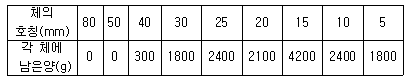 [건설재료 및 시험] 전체 15㎏의 굵은 골재로 체가름 시험을 한 결과가 아래의 표와 같을 때 조립률은?