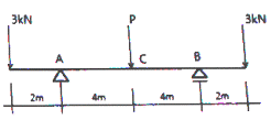 그림과 같은 양단 내민보에서 C점의 휨모멘트 MC=0의 값을 가지려면 C점에 작용시킬 하중 P의 크기는?