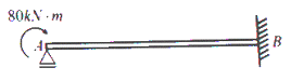 그림과 같은 보의 A단에 모멘트 M = 80kNㆍm 가 작용할 때 B단에 발생하는 고정단 모멘트의 크기는?