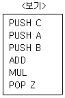 <보기>는 스택을 이용한 0-주소 명령어 프로그램이다. 이 프로그램이 수행하는 계산으로 옳은 것은?