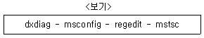 <보기>는 Windows XP의 실행창(시작 ⇒ 실행)에 입력할 수 있는 명령어들을 나열한 것이다. 명령어별로 수행할 수 있는 기능을 순서대로 나열한 것은?