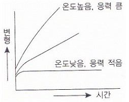 [임의구분] 일반적으로 고온에서 볼 수 있는 현상으로, 금속에 오랜 시간 외력을 가하면 시간이 경과됨에 따라 그 변형이나 변형률이 증가되는 현상은?